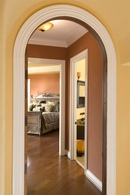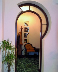Стиль, пришедший из древнеримской цивилизации, гармонично дополняет любой интерьер. Высота потолков при установке римских арок рекомендована не менее 2,5 метров. Арки этой формы должны быть сооружены из древесного массива или камня. - Оригинальная форма арки в виде коромысла может подойти для разных проемов. Свод арки в виде коромысла, выполненного из красного дерева, отлично будет сочетаться с мебелью соответствующей цветовой гаммы. Этот свод даже в минималистском интерьере смотрится изыскано и со вкусом.