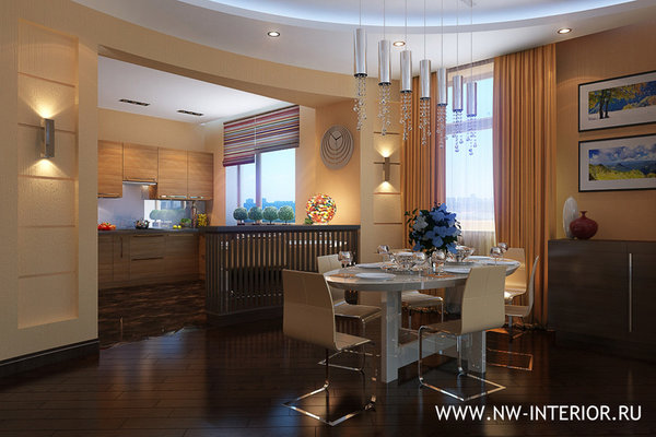 Зонирование кухни с гостинной