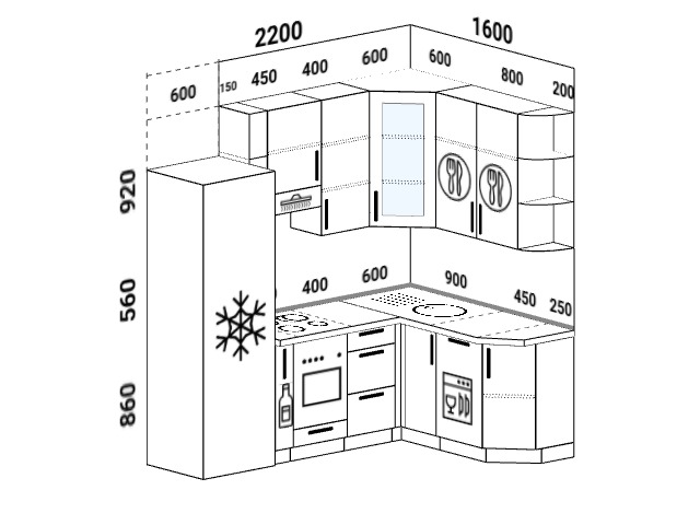 Планировка мебели в угловой кухне 5 метров считается наиболее практичной.