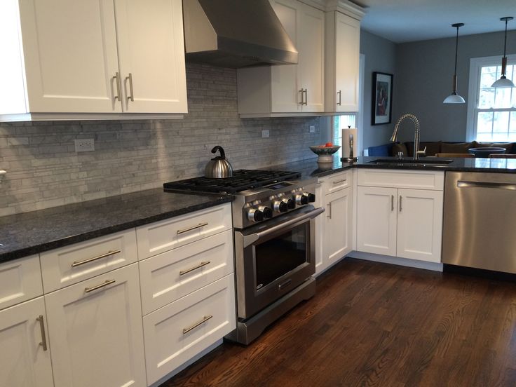 Многие тенденции приходят и уходят, но одним из вечнозеленых и всегда популярных среди наших клиентов вариантов являются кухонные шкафы серого цвета Shaker. Серые кухонные шкафы-шейкеры — одни из самых универсальных и простых в оформлении шкафов. Любите ли вы современный вид или более традиционный дизайн кухни, вы не ошибетесь, выбрав серые кухонные шкафы-шейкеры. На этой кухне W.B. Дома они сочетались с гранитными столешницами и фартуком из белого камня. Темная фурнитура на шкафах-шейкерах идеально сочетается с черными стульями. Нам особенно нравятся деревянные полы и деревенский кухонный стол. На наш взгляд, они добавляют идеальную дозу тепла этому великолепному дизайну кухни.