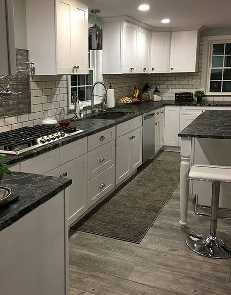 Черные столешницы привнесут в интерьер кухни больше мужской энергии. Найдите различные черные столешницы с большим количеством прожилок, чтобы создать дополнительный интерес к вашему интерьеру.