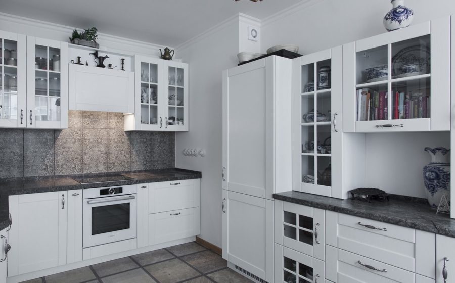 Вам нравится сочетание серых столешниц с белыми шкафчиками?