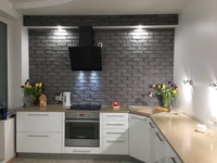 Очень часто используется в облицовке кухни и наделяет дизайн индивидуальностью. Благодаря огромному выбору искусственный камень с имитацией кирпича выглядит максимально реалистично. Особыми достоинствами обладает гипсовая кирпичная кладка. Отделка из гипса экологичная, дышащая и отличается прочностью. Кроме того, материал легко обрабатывать и можно покрасить в любой нужный цвет.