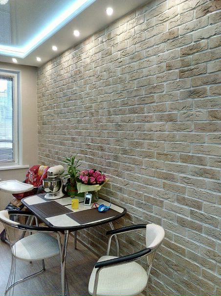 Стена под кирпич на кухне: белый кирпич дизайн в интерьере