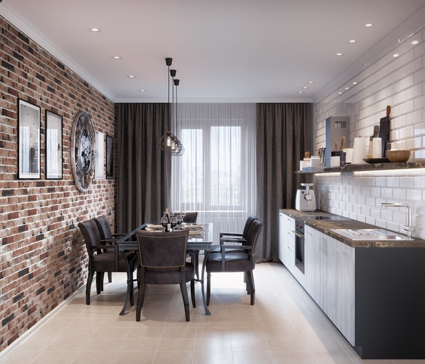 Кухня Белая Открытая Кирпичная Стена Идеи Дизайна