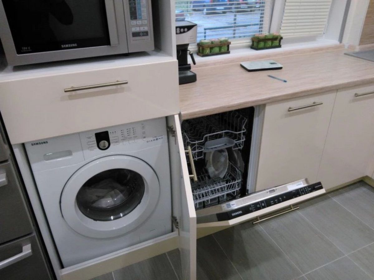 Как разместить на кухне стиральную машину и сушилку?