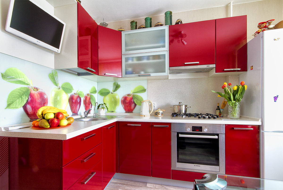 Маленький экран подходит для стандартных кухонь в хрущевках, большинстве других зданий. В них обычно все заставлено мебелью, поэтому нет лишних мест.