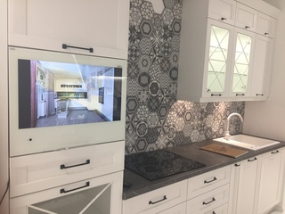 Устанавливать маленькие модели бессмысленно, потому что посмотреть фильм захочется не только хозяйке, но и всем членам семьи, которые пришли кушать. Поэтому размещать экран рекомендуется так, чтобы его было видно всем, с разных углов большой кухни.