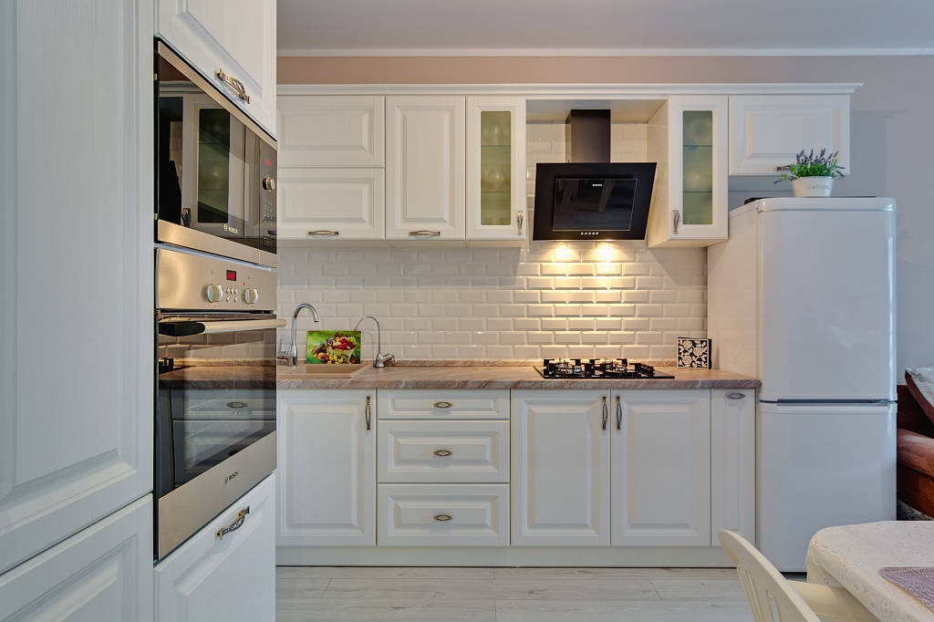 Г-образная кухня – частый вариант, используемый в домах и квартирах разных планировок.