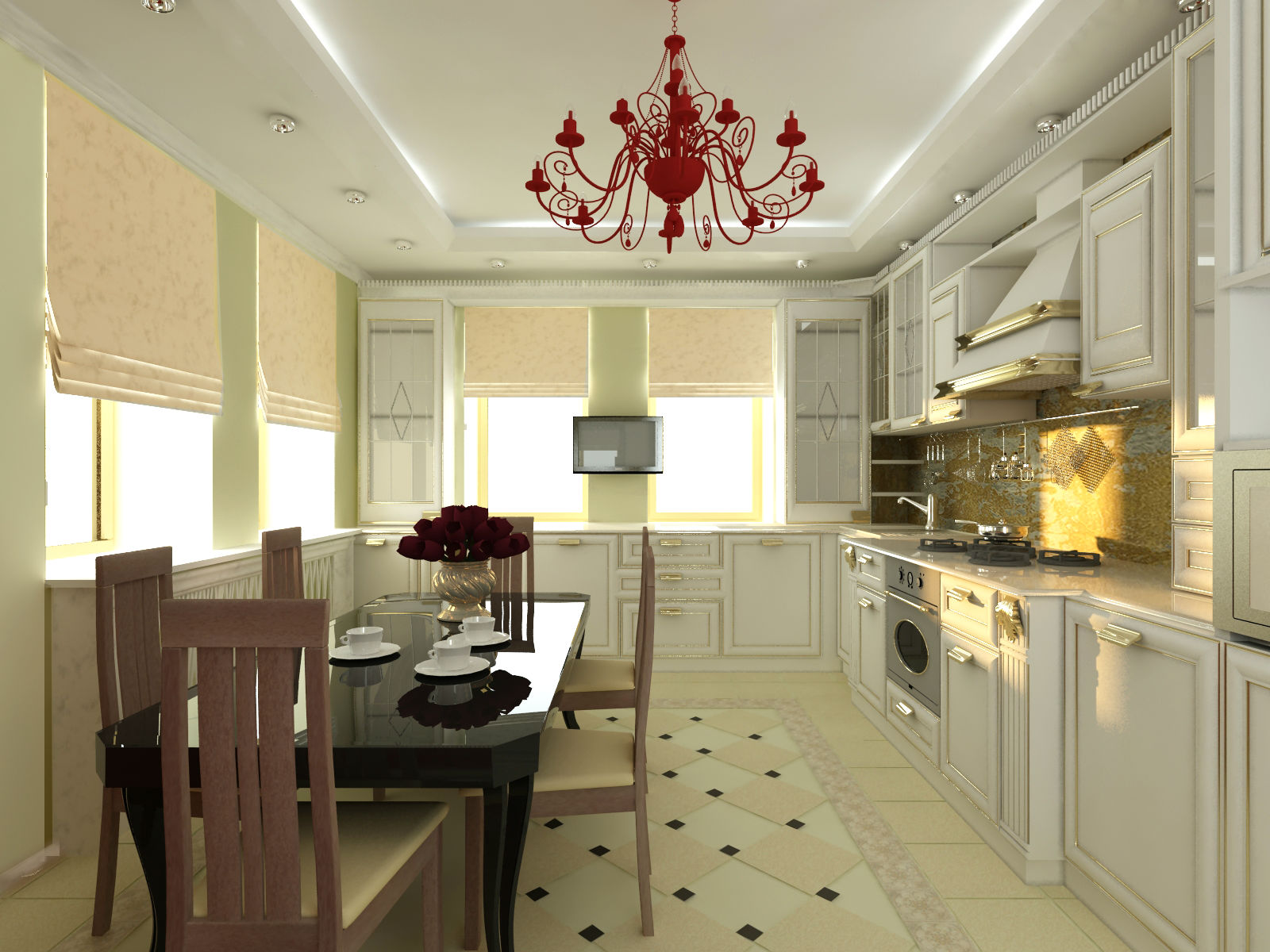 Поскольку в этом помещении кроме зоны готовки есть столовая и гостиная: