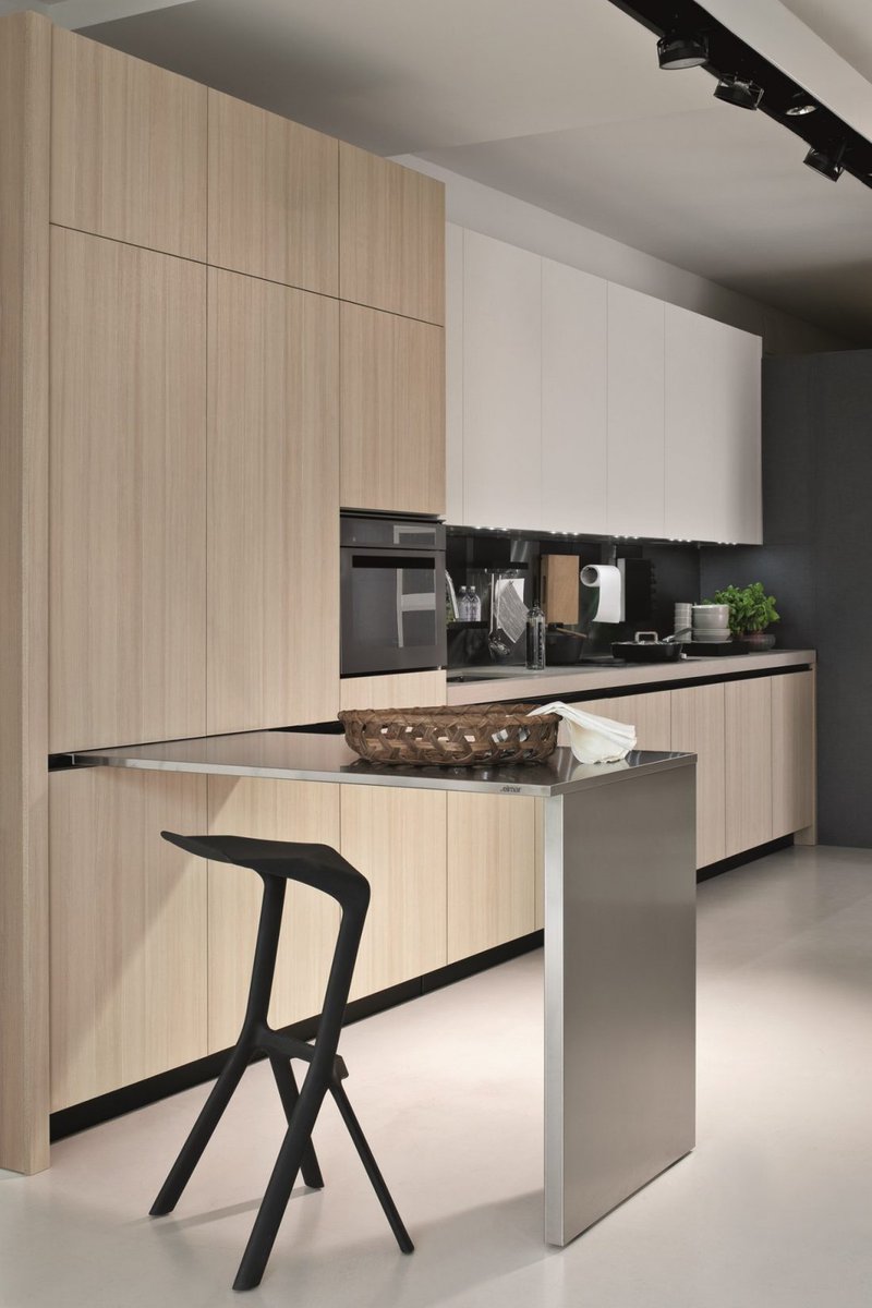 Иначе дела обстоят с современной кухней, предметное наполнение которой является в первую очередь функциональным. Главное требование — барная стойка должна учитывать особенности пространства, став его логическим продолжением.