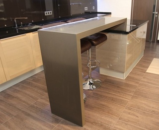 Обладает роскошной, богатой текстурой, которая сама по себе может быть декоративным компонентом. Барные стойки для кухни из натурального камня обычно заказывают в комплекте с другой кухонной мебелью, так как «созвучность» материалов в пространстве играет важную роль. Но следует учитывать, что это дорогой вид, который требует особого ухода.