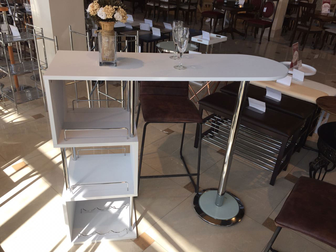 Различают также открытый и закрытый тип барных стоек. Открытая представляет собой любую конструкцию, опирающуюся на ножку и не несущую никакой дополнительной функциональной нагрузки.