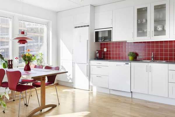 Белая кухня с красным фартуком – 85 фото, сочетание цветов и дизайнерские рекомендации