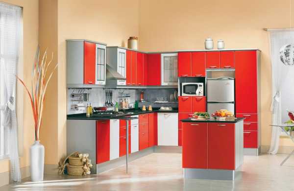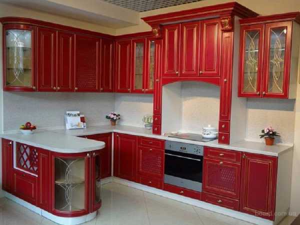 Красный кухонный гарнитур выбирают исходя из размера помещения и количества проживаемых людей.
