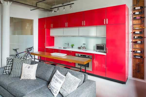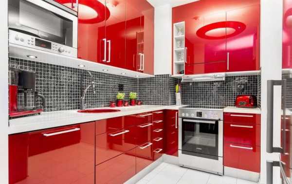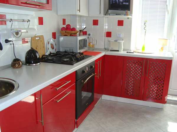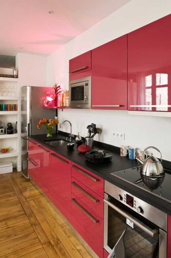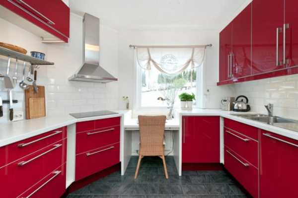В маленькую кухню можно подобрать красный гарнитур при условии соблюдения некоторых правил: