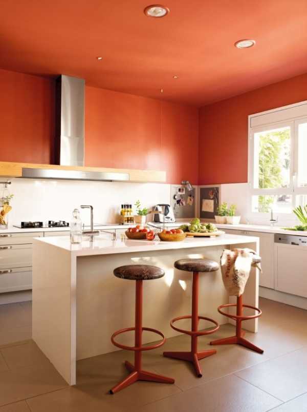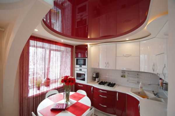 Оформляя потолок на кухне, не стоит делать его полностью красным. Этот цвет можно использовать лишь при создании многоуровневого потолка, для некоторых его частей — и то лишь при условии, что обустраиваемое помещение имеет достаточно большую площадь.