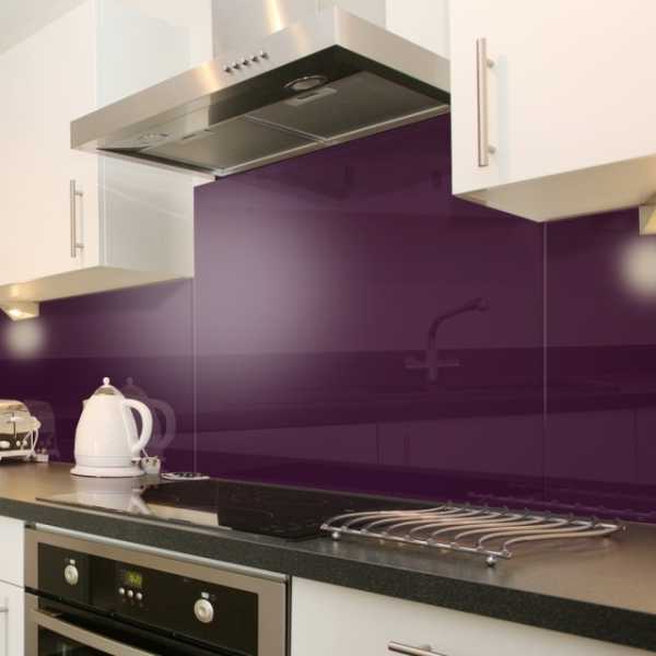 Можно выбрать и более темную версию доминирующего оттенка. Темно-фиолетовая мозаичная плитка — прекрасное дополнение к лиловому гарнитуру.