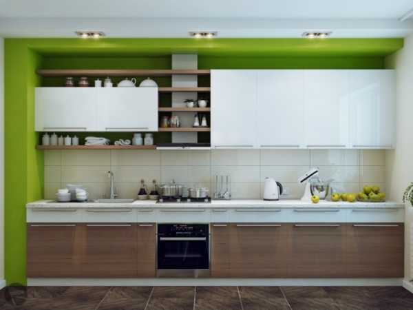 Однорядный гарнитур подойдет для средней и небольшой кухни, где вся кухонная мебель занимает пространство вдоль одной стены. Оптимальная длина – от 2,5 до 4 метров. При прямой планировке гарнитура плита, холодильник и мойка находятся на одной линии. Между мойкой и варочной поверхностью должна быть столешница.