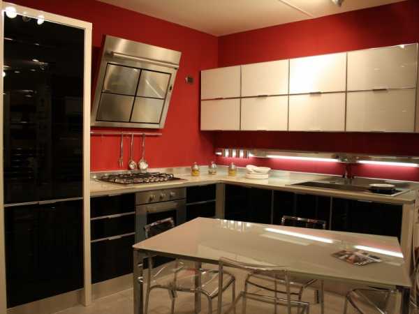 Красными могут быть даже стены, но тогда белый цвет должен преобладать в кухонном гарнитуре. Создавая подобный интерьер, следует отдавать предпочтение дорогим материалам.