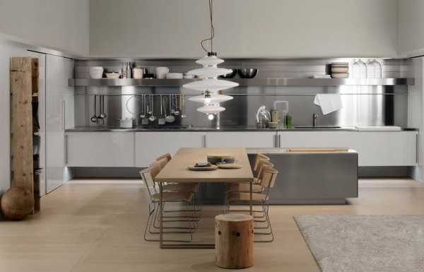 Отражает освещение, подходит для любой кухни, поддается уборке, но и легко загрязняется следами от рук.