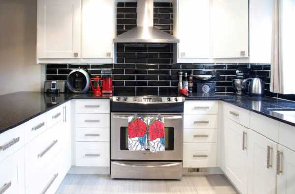 Пожалуй, это наиболее удачное решение. Черный отлично впишется в любой стиль, при этом он замечательно гармонирует с остальными оттенками. При обустройстве красно-белой кухни черным можно сделать пол, некоторые фасады мебели, столешницу, стулья. Отлично в такой интерьер впишется красивая посуда черного цвета.