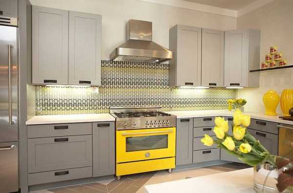 Серая кухня отнюдь не синоним скучной. Она может выглядеть ярко и стильно, достаточно правильно подобрать цвета. Для такого гарнитура хорошо подойдут красные, розовые, желтые, синие тона фартука.