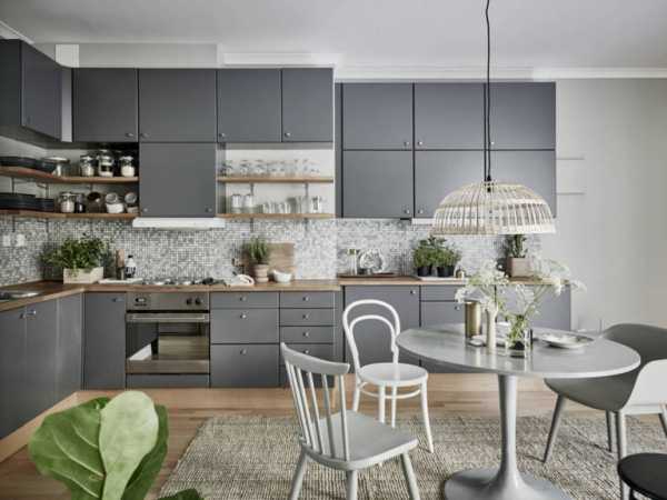 Тоже неплохой вариант, сдержанный и стильный. Серый цвет в любом случае будет оставаться нейтральным и дополняющим остальные оттенки. Его лучше всего использовать, как фон — например, покрасить в серый цвет стены. Серыми также могут быть жалюзи на окнах, рабочие поверхности и некоторые декоративные элементы.