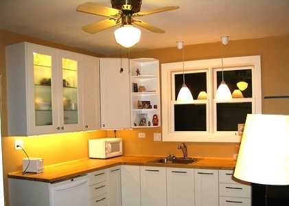 Нужно приложить усилия для того, чтобы в помещении не было недостатка в свете. Также следует максимально использовать естественное освещение, и обеспечить постоянный доступ на кухню солнечных лучей.