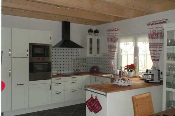 Варианты исполнения дизайна белой кухни могут быть разнообразными. Популярны белые кухонные гарнтуры в сочетании с черным, красным, коричневым, оранжевым, зеленым. В таких кухнях должен заметно преобладать белый цвет, а дополнительный цвет используется для того, чтобы оживить кухню, сделать ее более веселой.