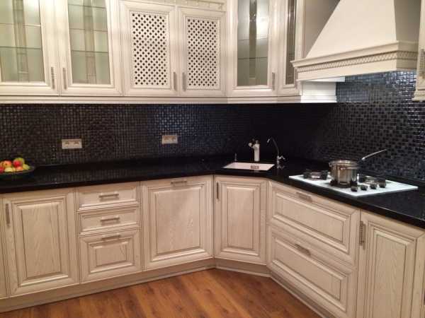 Фартук на такой кухне следует выполнить в виде мозаики в нескольких оттенках белого.
