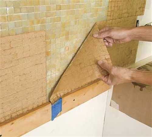 Уложить плитку сразу на стену под силу только опытному мастеру. Так что при работе своими руками, тем более при малых размерах мозаики предпочтительнее поступать иначе.