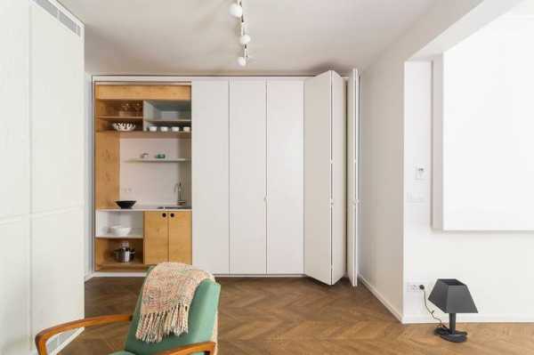 Выбирать данную планировку без сомнения можно владельцам малогабаритных квартир с небольшими кухнями, на которых мало готовят. Это поможет сэкономить место, сделать практичной рабочую зону.