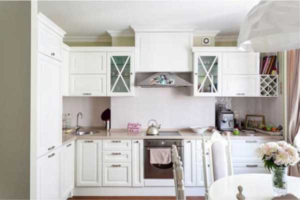 Наполнить кухню легкостью и сделать ее более просторной помогут светлые тона. Модель кухонного гарнитура должна быть функциональной и лаконичной, без излишних декоративных украшений. Хорошо впишется в такой интерьер любая бытовая техника, и ее даже не придется прятать за фасадами.