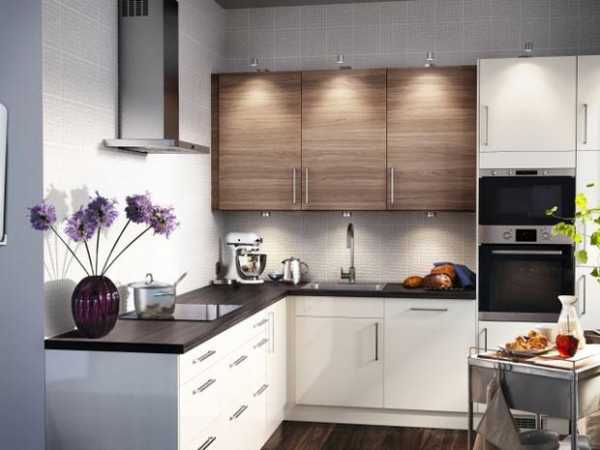 Если в вашем распоряжении находится кухня небольшой площади, вы можете позволить себе любую планировку: двухрядную, угловую, островную или линейную. Многое будет зависеть от формы заданной комнаты. Замечательным вариантом является планировка в виде латинской буквы «L», ведь она подойдет для пространства любого формата. Для квадратной комнаты уместна расстановка с островом. Длинная вытянутая комната лучше всего смотрится в линейном варианте расположения мебели.