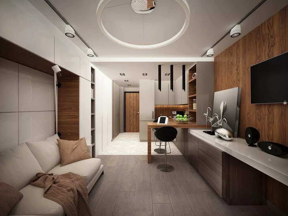 Дизайн квартиры площадью 36 квадратных метров оптимизирован переходным Id
