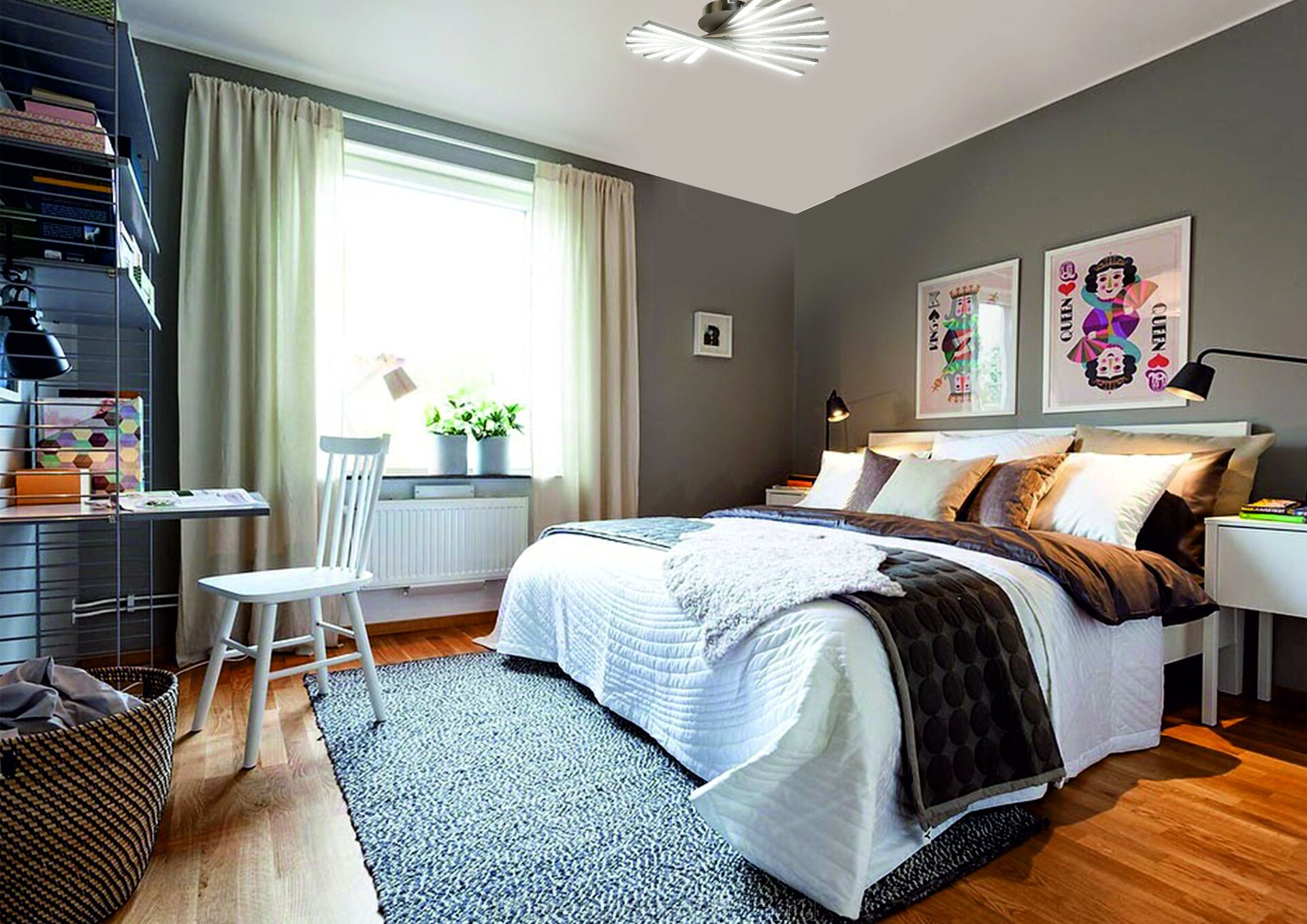 сочетание светло-серых и темно-серых обоев с голубым, белым и бежевым цветами. Как подобрать шторы и мебель в спальню?
