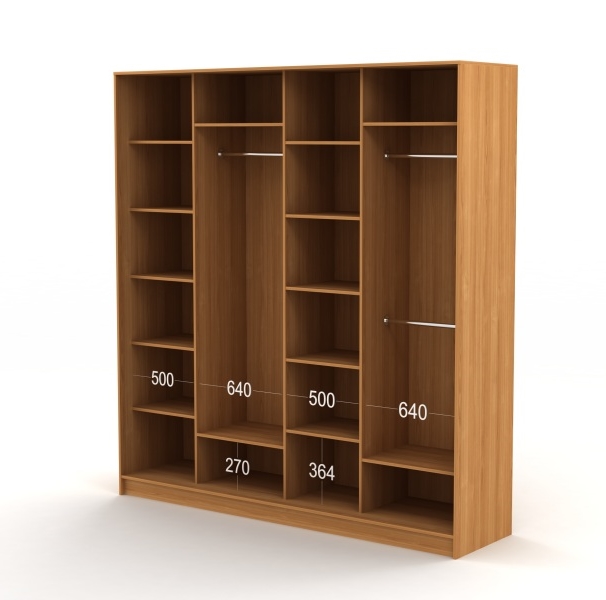 Корпусный шкаф купе в готовом варианте снабжен полным комплектом деталей: две боковины, крыша, дно и задняя стенка. Такой шкаф можно поставить на другое место, разобрать и заново собрать при необходимости на новом месте.