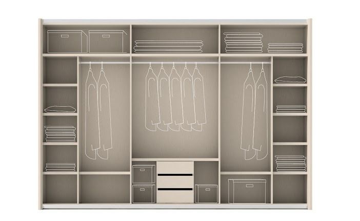 3 дверный шкаф купе внутреннее наполнение фото: советы, варианты, фото с размерами