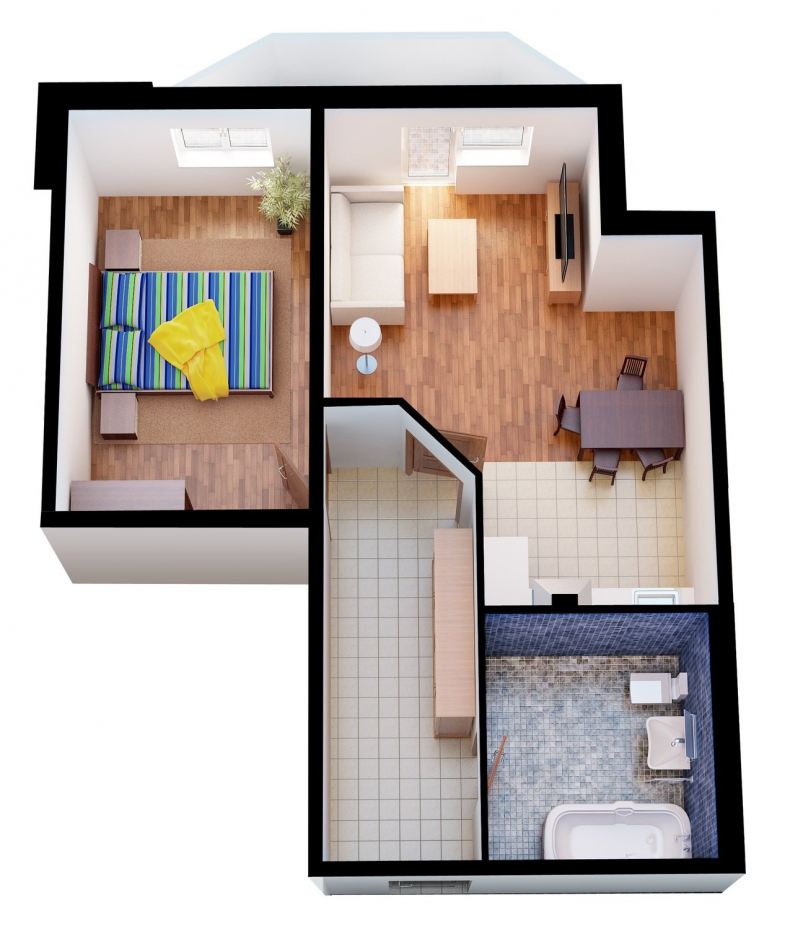 Первое, на что Вам следует ориентировать при составлении дизайна интерьера – это собственные пожелания и предпочтения. Всё потому что именно Вам далее жить в этой укромной однокомнатной квартирке, а не кому либо. Поэтому, если Вы любите дерево в интерьере или, скажем, жёлтый цвет, — следуйте своим желания. И даже если Вы наняли профессионального дизайнера по проектированию дизайнов интерьеров квартир, всё равно постарайтесь донести и объяснить ему свои предпочтения, мол: «Вы конечно рисуйте, что считаете правильным, но шторки синего цвета в белый горошек, должны гармонично сочетаться с общим интерьером».