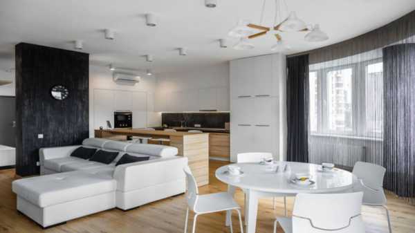 Чтобы провести правильное зонирование существует несколько способов. Рабочую зону кухни можно отделить от гостиной с помощью барной стойки или дивана.