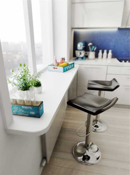 Ещё одним вариантом для стола будет подоконник, который можно сделать по типу барной стойки.