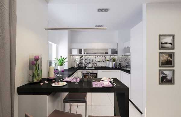 Кухонная зона. С помощью барной стойки можно отлично отделить кухню от остальной квартиры. К тому же, стойка может заменить и обеденный стол. Другой вариант – это складной стол. Он будет обычным журнальным столиком, а при необходимости раскладываться в большой, полноценный стол, за которым уместиться много гостей;