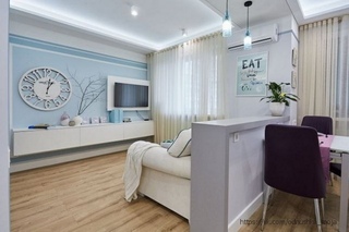 Главное постараться, чтобы интерьер 1 комнатной квартиры не был перегружен деталями, излишними предметами декора, громоздкой мебелью или «тяжелыми» оттенками. Яркие комнатные растения, большие аквариумы, изящные элементы индивидуального дизайна будут создавать легкость и свежесть атмосферы вашей однокомнатной квартиры.