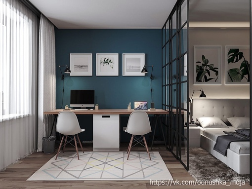 Спальня-кабинет. Единственный способ объединения этих помещений – установка компактной кровати, которую можно спрятать в шкаф.
