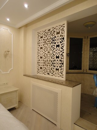 Также отметим, что подобные перегородки могут иметь не только любую форму, но и любой цвет (от золотистого до полностью прозрачного). Более того, они могут быть как ажурными, так и монолитными.