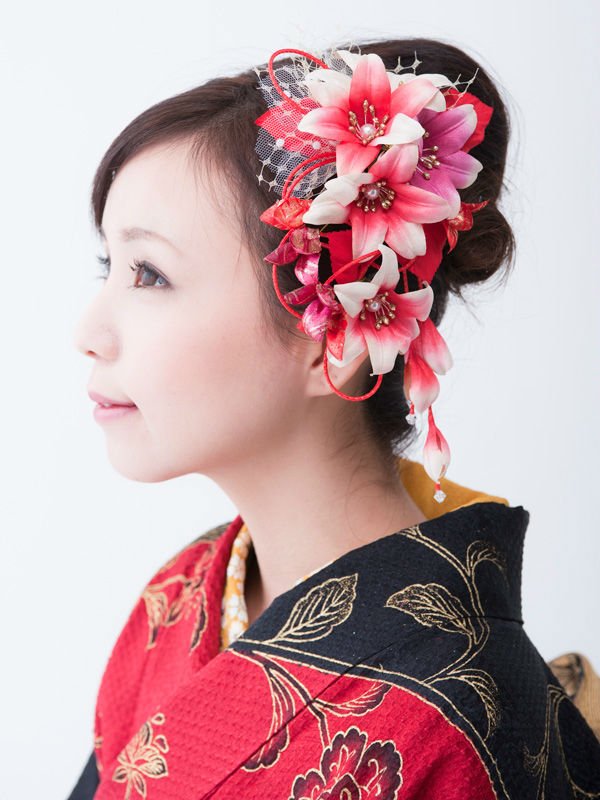 Когда женщины носят кимоно, они обычно используют канзаши, украшения для волос, дополняющие их традиционные японские прически.