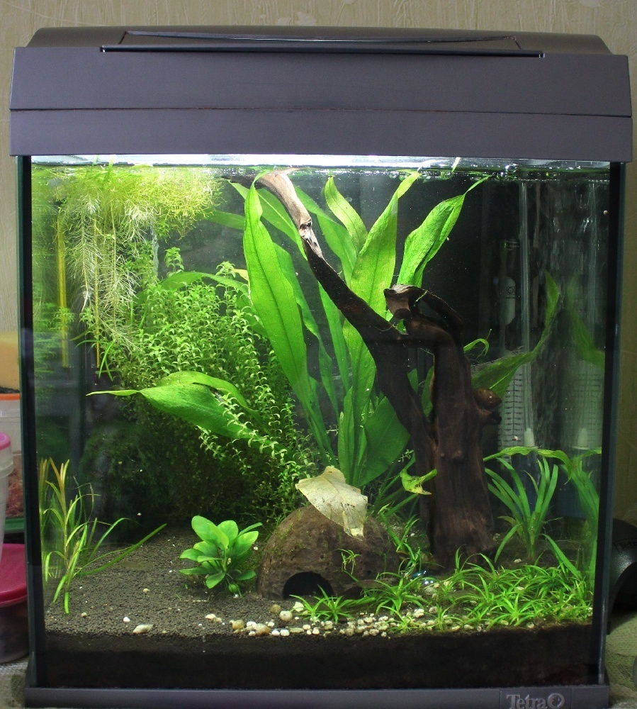 Обустройство 20 литрового аквариума уже само по себе подразумевает небольшой объём воды, что также нужно учитывать, если хочешь создать комфортные условия для рыбок, креветок и растений и организовать для них уютный дом.