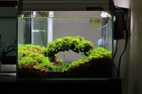 - Вабикуса. Данный стиль отличается моховой кочкой, выглядывающей на поверхности водной глади.