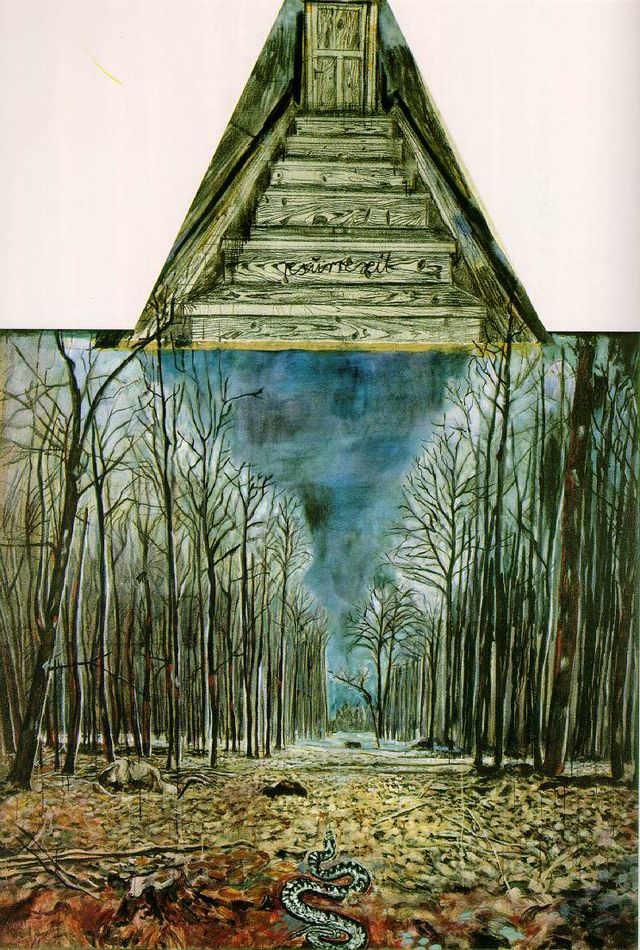 Картина Кифера прочитывается как многослойный текст. Здесь и пейзаж как повторяющийся мотив в творчестве художника, и лес — очень важный знак-символ для художника. Он вырос в небольшом немецком городе Донауэшингене в Шварцвальде, земля Баден-Вюртенберг, среди лесных пейзажей прошло все его детство. Лес играет важную роль и в немецких народных сказках, записанных братьями Гримм, таких как «Гензель и Гретель», когда дети, отведенные отцом в лес, попадают в ловушку ведьмы — Пряничный дом. Лес — это и матрица немецкого самосознания, потому что он ассоциировался с землей и связан с мифологемой крови и почвы (Blut und Boden), которая отражала идею националистического превосходства и чистоту арийской расы и активно использовалась впоследствии нацистскими идеологами. Земля в лесу на картине Кифера, тщательно обработанная густыми красками, наполнена историей и историческими аллюзиями.